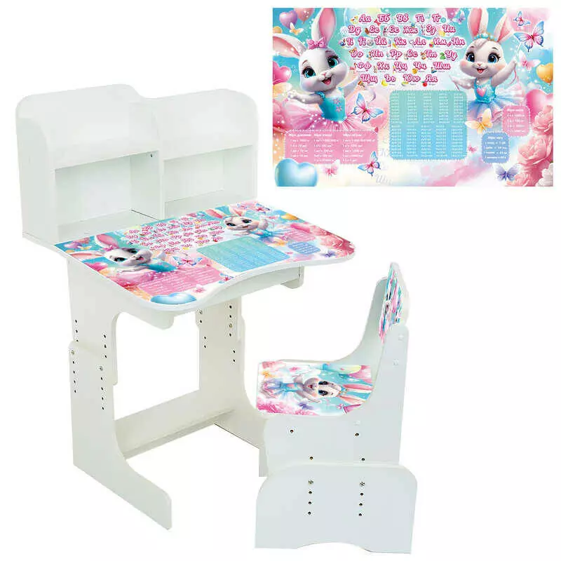 гр Парта шкільна "Зайки балерини" ПШ 056 (1) ЛДСП, колір білий, 69*45 см, + 1 стілець, з пеналом