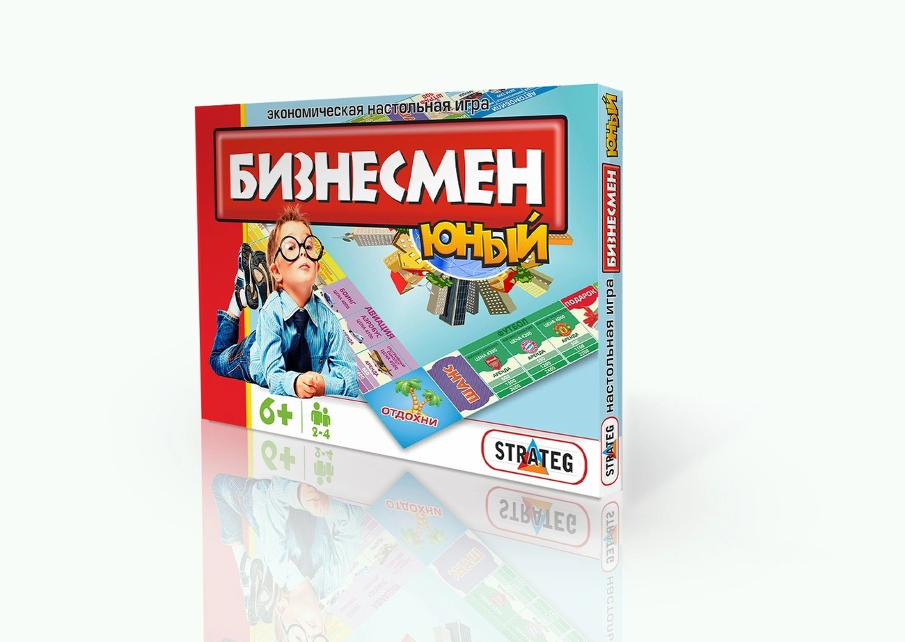 Юний бізнесмен - це розвиваюча настільна гра. В силу своєї яскравості і барвистості гра обов'язково зацікавить дітей. Гральне поле виготовлено з міцного картона, що робить гру довговічною. Великі букви і цифри на картках і грошах роблять гру доступною для розуміння. Гра сприяє розвитку: допомагає в розвитку логіки і творчих здібностей дитини допомагає у формуванні мислення, уваги, сприйняття і уяви покращує стратегічні навички розширює кругозір дитини. Розмір упаковки: 33х25х2,5 см Комплектація: ігрове поле - 1 шт., Гральні фішки -3 шт., Кубик - 1 шт., Картки філій, картки «шанс», комплект спеціальних банкнот, інструкція Вік: 6 (в гральному наборі присутні дрібні деталі)