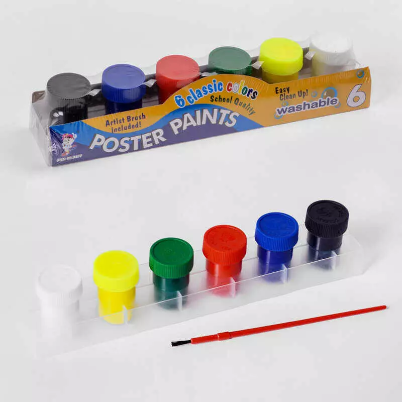 Гуаш С 37146 (96) 6 кольорів в упаковці, пензлик, в коробці