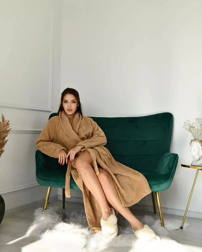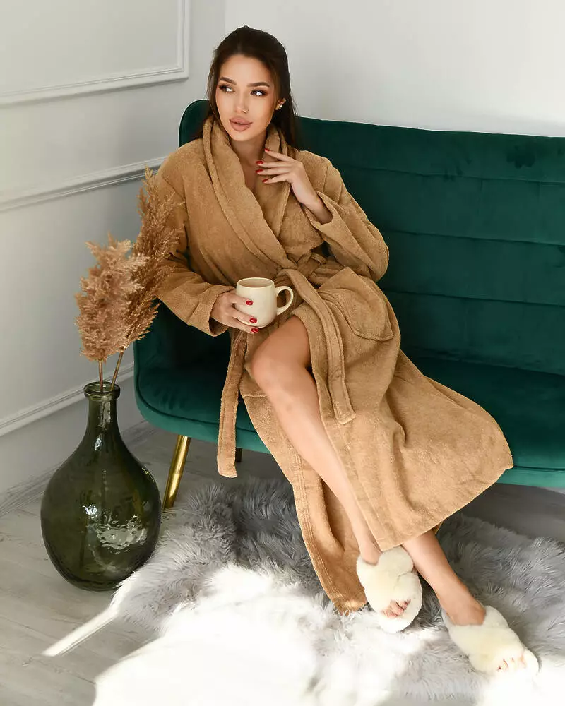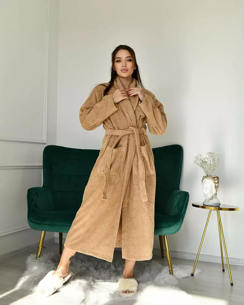 Натуральний махровий халат дуже приємний і не викликає подразнення на тілі. Ви зможете загорнутися в нього прохолодним ранком або відразу ж після ванни, щоб зберегти тепло. Халат просто незамінний для дому, якщо ви хочете відчувати комфорт. -Тканина екологічна, гіпоаллергена, приємна на дотик, придатна для повсякденного носіння; -Халат на запах, з кишенями, є пояс; -Зручний крій, що не сковує рух; -Не деформується, не линяє, не скачується.