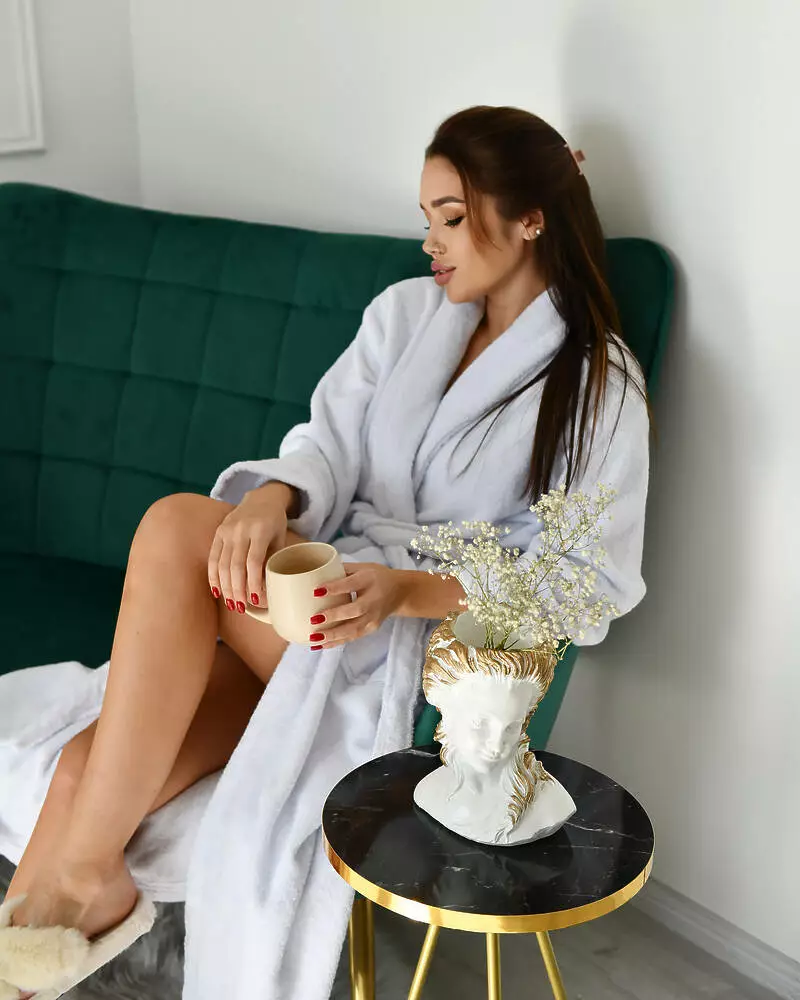 Натуральний махровий халат дуже приємний і не викликає подразнення на тілі. Ви зможете загорнутися в нього прохолодним ранком або відразу ж після ванни, щоб зберегти тепло. Халат просто незамінний для дому, якщо ви хочете відчувати комфорт. -Тканина екологічна, гіпоаллергена, приємна на дотик, придатна для повсякденного носіння; -Халат на запах, з кишенями, є пояс; -Зручний крій, що не сковує рух; -Не деформується, не линяє, не скачується.
