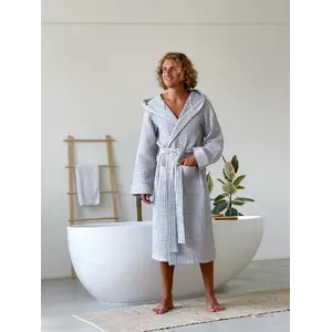 Стильний банний халат з капюшоном приємний до тіла і добре вбирає воду, його дуже приємно вдягнути після лазні або душу. Ідеальний для прохолодної пори року. Щільна та натуральна тканина допоможе швидко зігрітися. Тканина добре "дихає" і не створює парникового ефекту.
