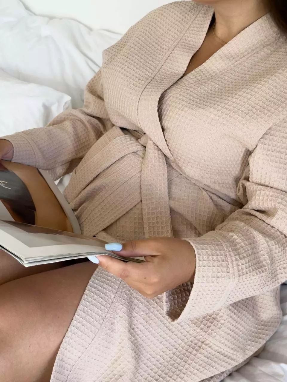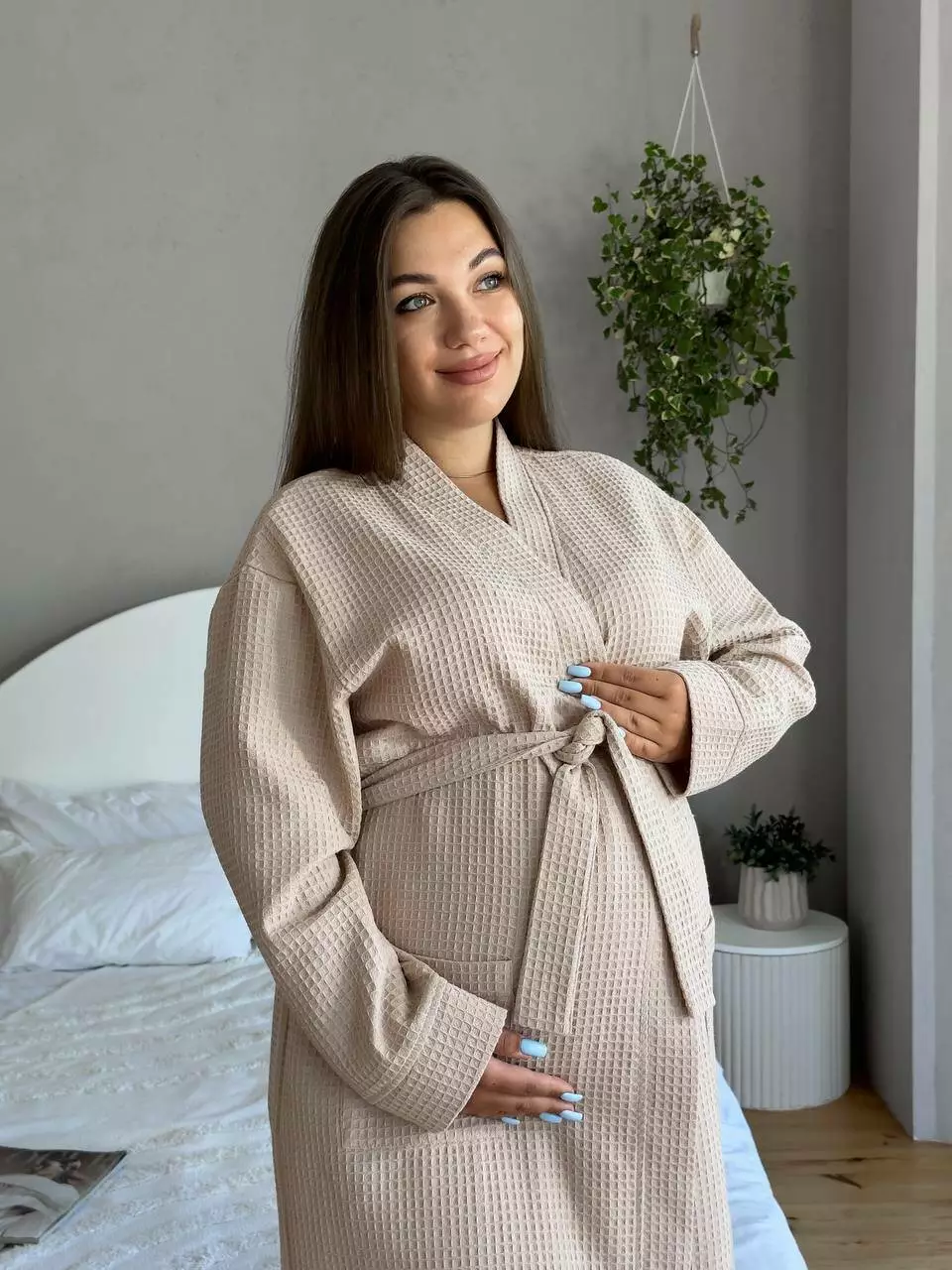 Довгий вафельний халат для вагітних COSY – це вираз стилю та затишку. Виготовлений з високоякісної вафельної тканини, він поєднує м'якість і унікальну здатність вбирати вологу, роблячи його невід'ємною частиною вашого гардеробу.
