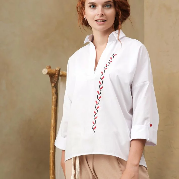 на манжеті. Блуза оформлена класичною Української вишивкою "Зигзаги