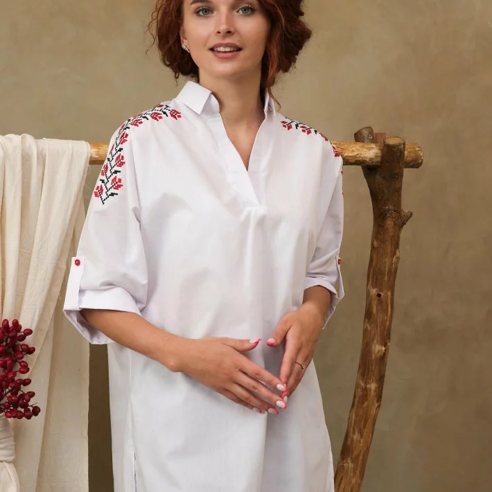 Сорочка оздоблена класичною Українською вишивкою "Зигзаги в