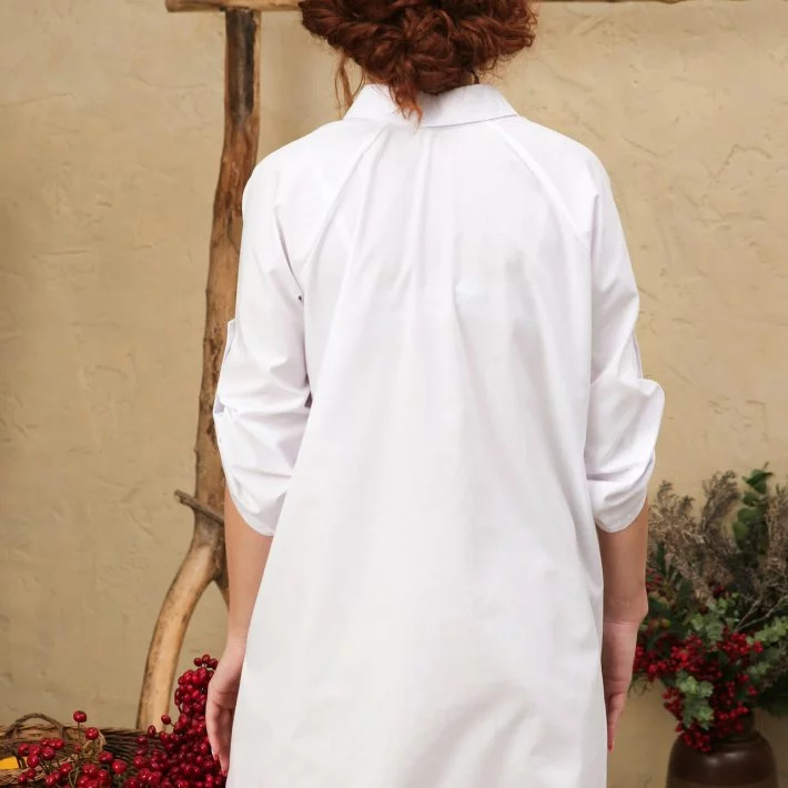 Туніка-сорочка дуже зручного крою з рукавом реглан. На горловині