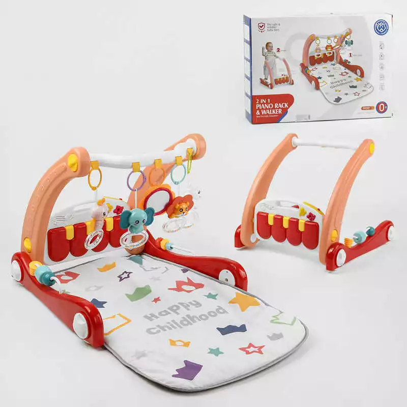 Ходунки 2в1 HE 0634 (12) ігровий музичний килимок, піаніно, 4 брязкальця з прорізувачем, дзеркальце, в коробці