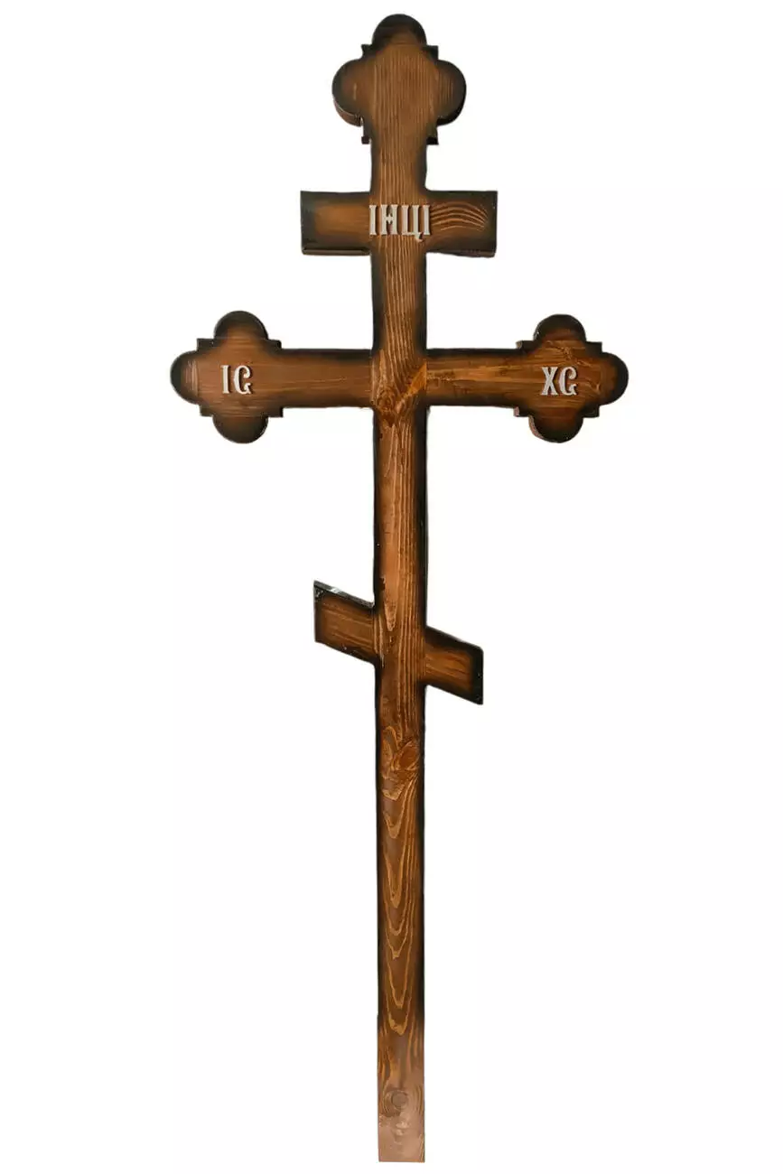 Хрест дерев'яний 3Д лаковий потрійний фігурний розмір 204*68*4см, ширина основи 8,5 см.