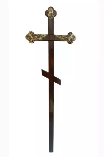 Хрест деревяний лаковий середній з ангелами, розмір 210*60*3 см, ширина основи 7,5 см.