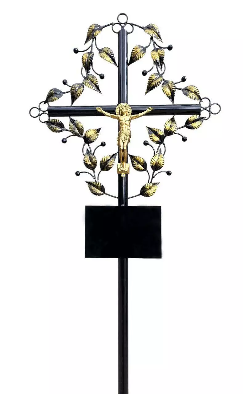 Хрест з кованими елементами пластиковим розпяттям металевою табличкою 220*78 см