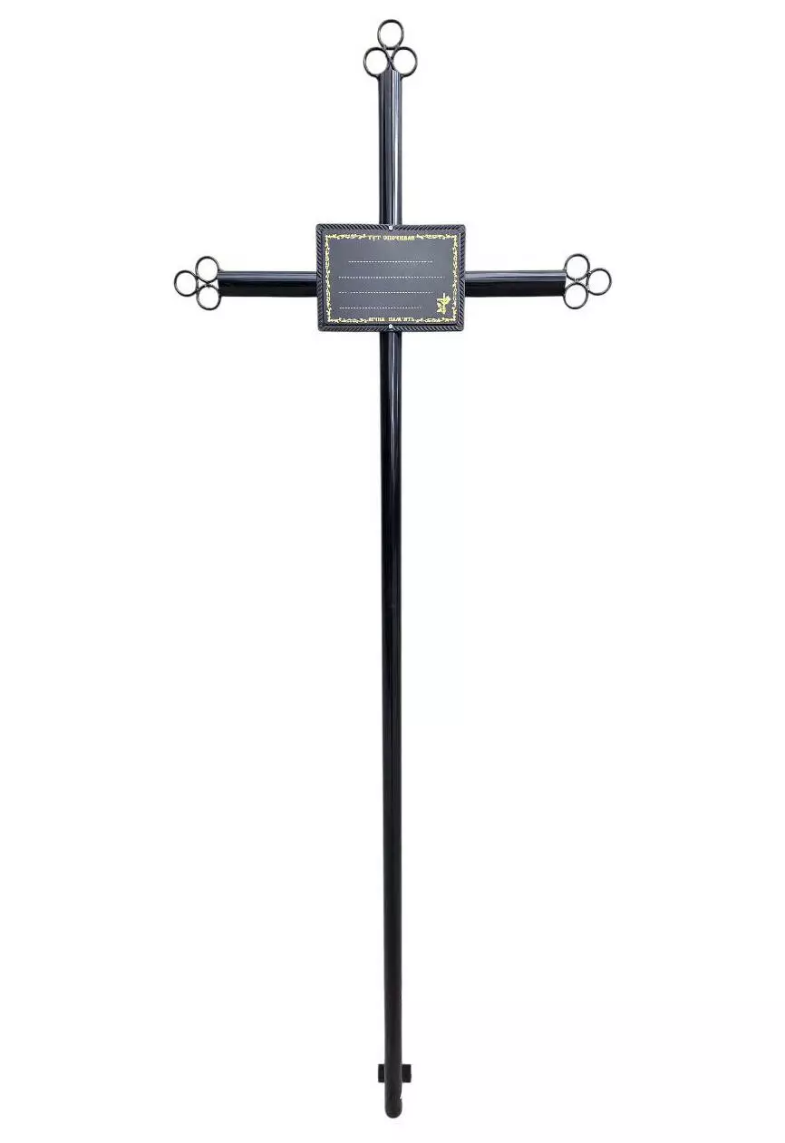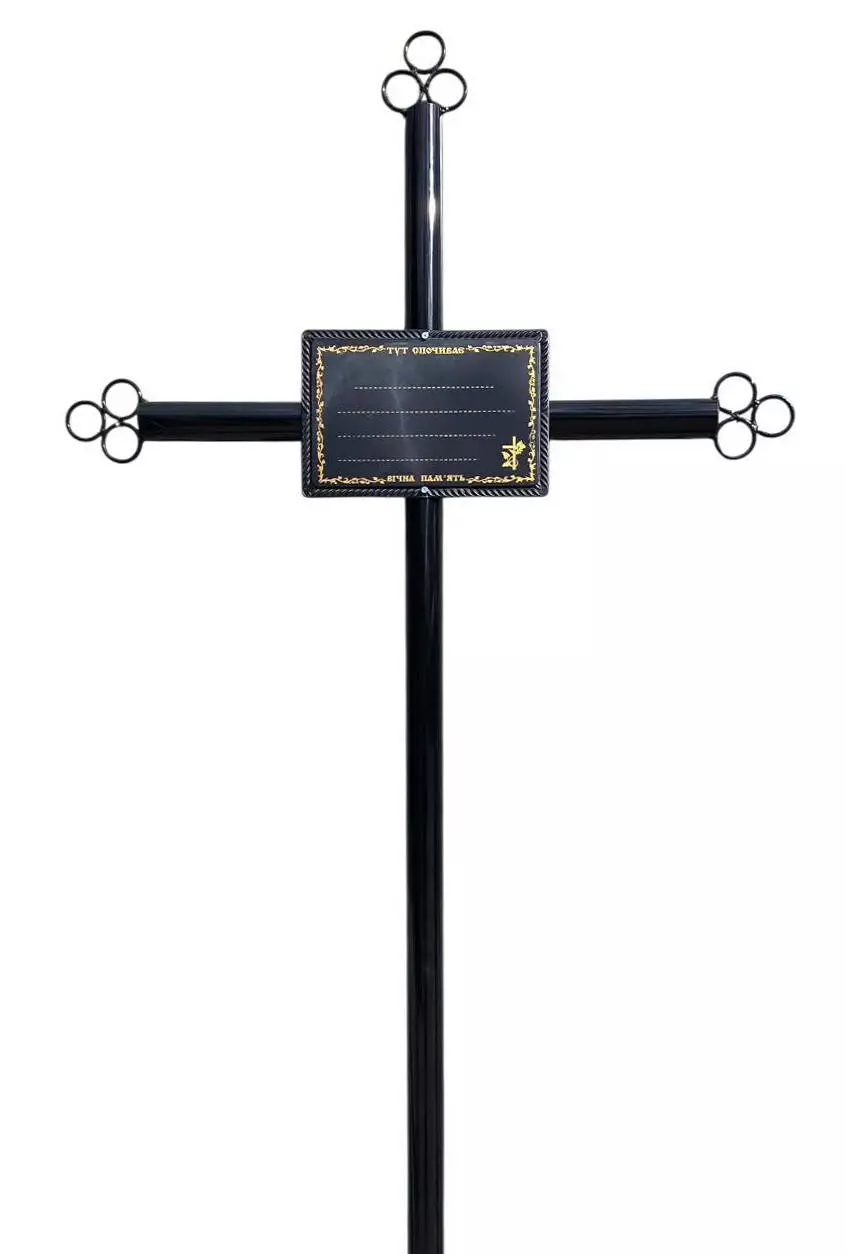 Хрест з круглої труби діаметром 42 з пластиковою табличкою, розміром 220*77 см.