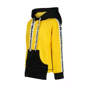 Деталі: Худі жовто-чорного кольору. Накладні кишені спереду. Глибокий капюшон. Резинка на манжетах. Біла тасьма з принтом "Yumster". Виконаний із якісної тринитки на флісі.