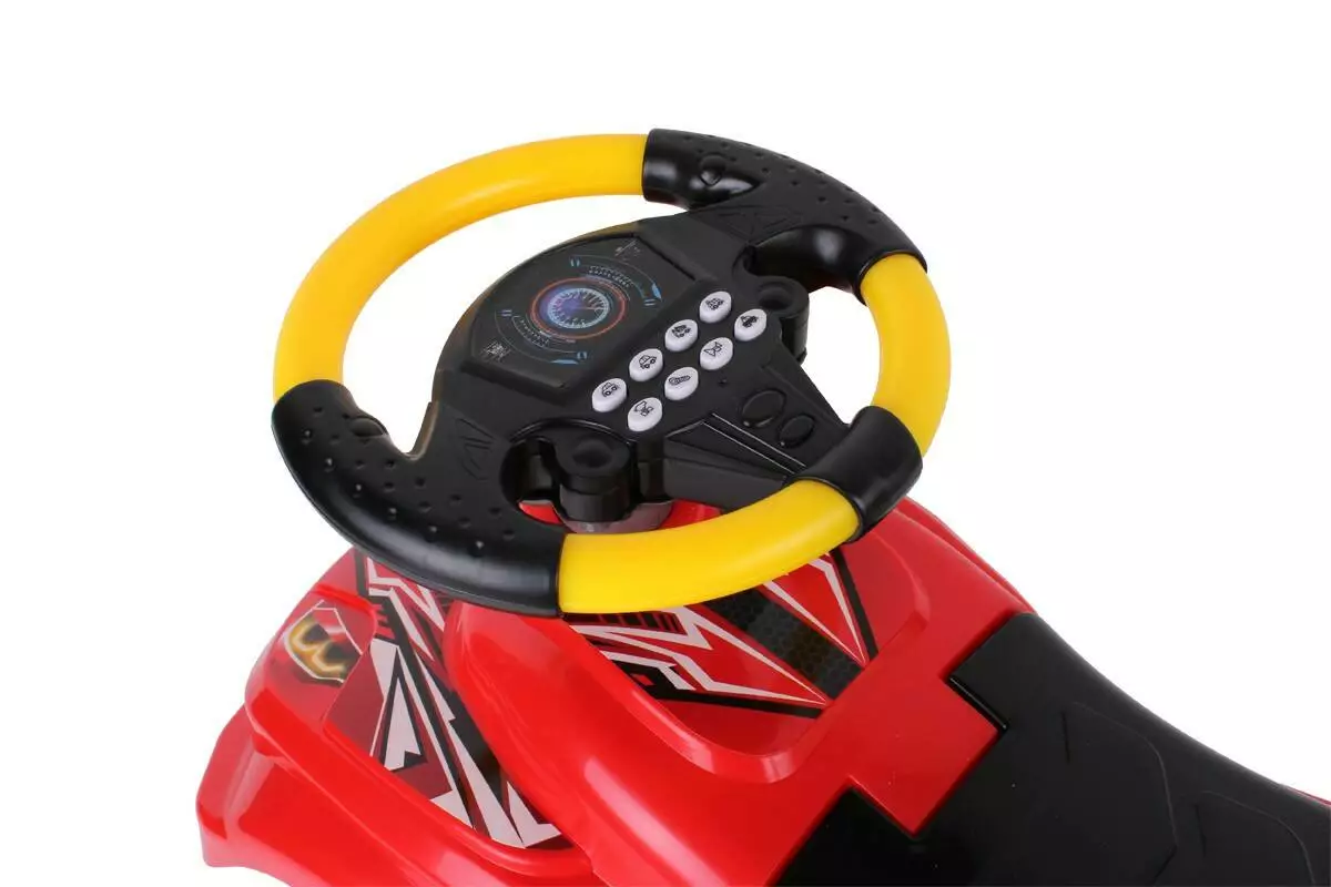 Іграшка "Автомобіль для прогулянок ТехноК" - для спритних маленьких "драйверів"! Яскраві кольори, "круті" наклейки, ергономічний дизайн, захоплюючі звуки і сигнали неодмінно привернуть увагу малюків до іграшки. А новий електронний кермо принесе море радості Вашим дітям під час катання на автомобілі. Вісім кнопок - це вісім різних сигналів: запуск двигуна, різке гальмування, екстрені служби поліції, швидкої та пожежної допомоги, попереджувальний «фа-фа» і весела музика. Автомобіль надійний, міцний, практичний і зручний. Для перевезення всіх необхідних речей розроблений великий багажний відсік під сидінням. «Автомобіль для прогулянок ТехноК» стане надійним другом Вашого малюка для ігор вдома на вулиці. Він проведе не один веселий годину катаючись на авто. Упаковка - стильна і міцна коробка з якісного картону зі зручними бічними отворами для перенесення. Харчування - 2 батарейки типу АА (не входять в комплект). Для дітей від 3-х років.