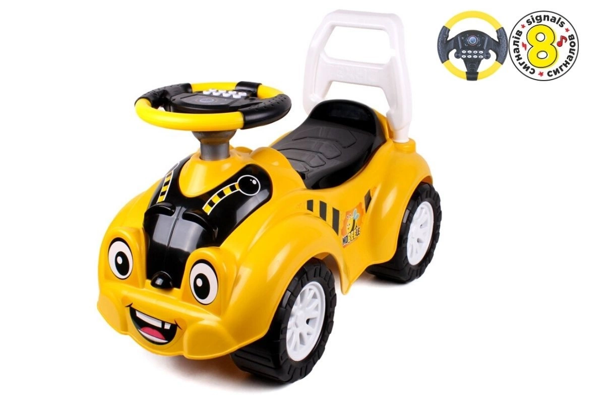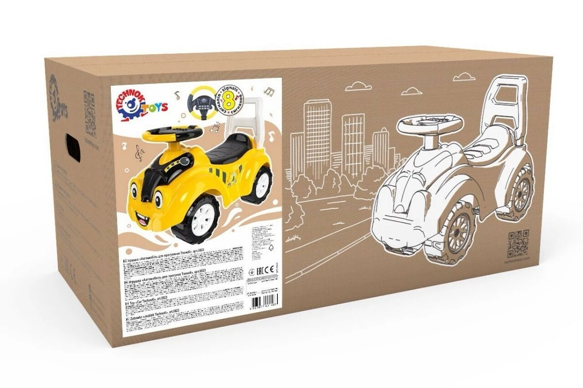 Надійний, функціональний і зручний. Це все про «Автомобіль для прогулянок ТехноК». А тепер ще й з цікавими звуками і сигналами. Новий електронний кермо принесе море радості Вашим дітям під час катання на автомобілі. Вісім кнопок - це вісім різних сигналів: запуск двигуна, різке гальмування, екстрені служби поліції, швидкої та пожежної допомоги, попереджувальний «фа-фа» і весела музика. Яскравий оригінальний дизайн «бджілка» неодмінно сподобається хлопчикам і дівчаткам. Функціонал іграшкового автомобіля, як сьогодення: в багажнику можна перевозити покупки, а піднявши кришку капота, заглянути в моторний відсік. «Автомобіль для прогулянок Техноком» - стане надійним другом для Вашого малюка під час ігор вдома на вулиці. Упаковка - стильна і міцна коробка з якісного картону зі зручними бічними отворами для перенесення. Харчування - 2 батарейки типу АА (не входять в комплект). Для дітей від 3-х років.