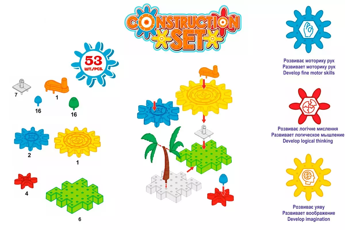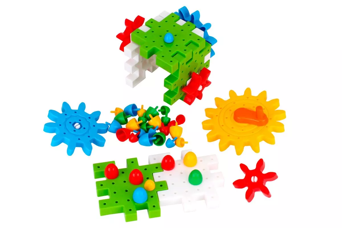 Іграшка "Конструктор ТехноК" - це чудова розвиваюча іграшка з шестернями, яка допоможе дитині в ігровій формі вивчити різні фізичні явища та основи механіки. Грати цим конструктором так само цікаво, як і збирати його. У наборі шестерні різного розміру, пластини-пазли та фішки мозаїки. З пластин білого та салатового кольорів збирається куб або плита, на які фіксуються шестірні за допомогою спеціальних кріплень. Якщо зібрати шестерні в правильному порядку, вся конструкція, ніби оживає при обертанні. А фішки мозаїки додають різноманітності та кольорів. Варіантів збирання конструктора – безліч, адже пластини як пазли та їх можна збирати у різній послідовності. Гра з "Конструктором" шестернями від ТехноК викличе справжнє захоплення у дітей та дорослих. Також іграшка цікава для вивчення роботи конструкцій та механізмів. Загалом у наборі 53 елементи, зібраних у формі куба. Упаковка – сітка з картонною етикеткою. Усі деталі конструктора виготовлені з якісної пластмаси, без запаху та без гострих країв. Для дітей віком від 3-х років. Вага 222 г габаритні розміри 12 х 12 х 11.5 см Розміри упаковки 61 х 41 х 13.5 см