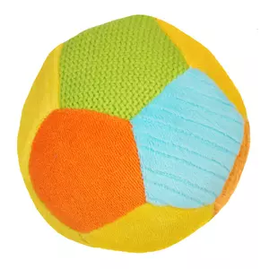 <p><em></em><em>М’яч - це геніальна іграшка у своїй простоті. Він супроводжує майже кожну дитину на різних життєвих етапах, реагуючи на нові і нові пізнавальні потреби. Новонароджені зачаровують, лише дивлячись на це, і через кілька місяців, коли рухова координація набагато краще, допитливий немовля охоче тягнеться до нього. З часом приходить час м'яча, перших незграбних ударів, неточних кидків, аж до… "Тато гол!". Різнобарвна поверхня кулі не тільки привертає увагу дитини, але й заохочує їх навчитися розпізнавати та називати кольори. Сигнал дзвону всередині іграшки стимулює почуття слуху і вчить як реагувати на звуки. М’який м'ячик покритий приємним на дотик матеріалом, підходять для дітей різного віку.</em></p><p><strong>ВЛАСТИВОСТІ:</strong></p><ul><li><em>різні, контрастні кольори, розташовані в геометричних п’ятикутниках, зосереджують зір дітей та вчать їх розрізняти кольори</em></li><li><em>різні текстури матеріалів цікаві дослідницьким пальцям, що впливають на розвиток дитини</em></li><li><em>м'якість м’яча сприяє навчанню сприймати та перекладати з однієї руки в іншу</em></li><li><em>тонкий звук дзвону спонукає грати, трясти, намагатися кидати і котити, водночас навчаючи причинно-наслідкових зв’язків</em></li></ul><p><strong>ТЕХНІЧНІ ДАНІ:</strong></p><p><em>Розміри:</em></p><ul><li><em>12 см</em></li></ul>
