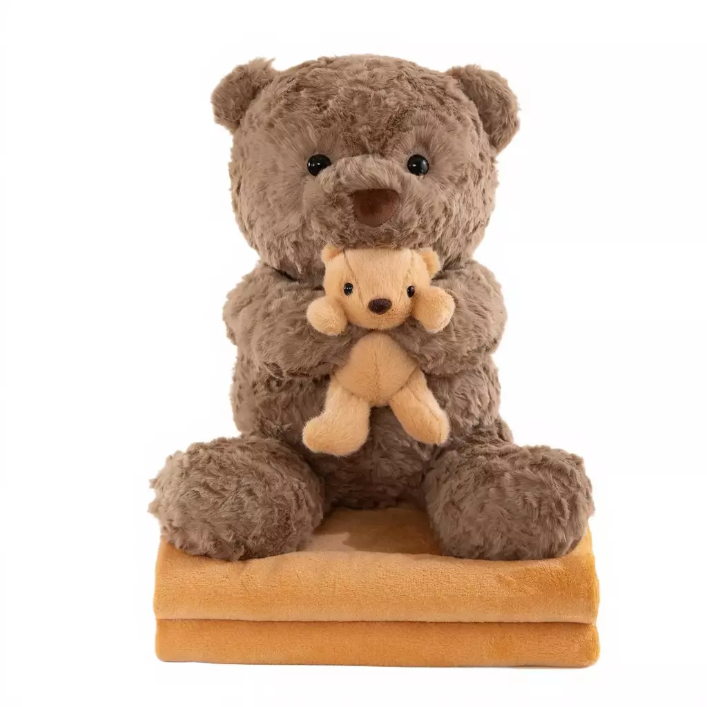 Іграшка-подушка Ведмідь з малям та пледом 110*140 см, коричневий