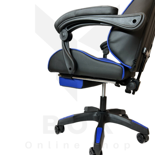 Ігрове комп'ютерне крісло Malatec (Чорне з синім) - Геймерське крісло з підставкою для ніг Malatec