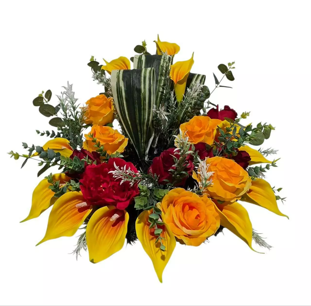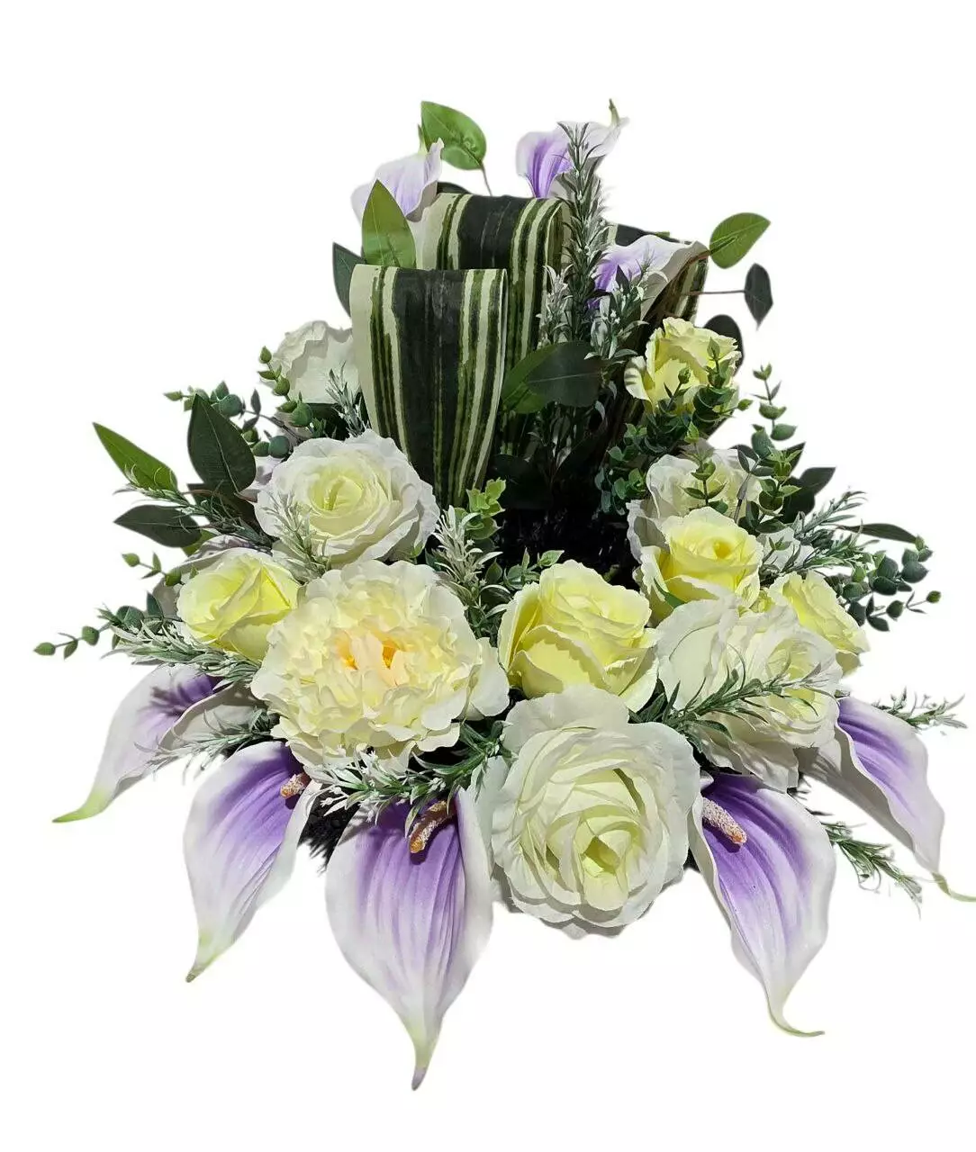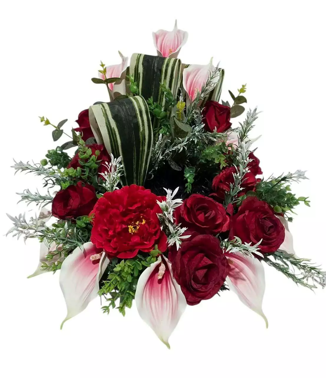 прикрашений головами троянди, півонії, кали, листям сансев'єрії,