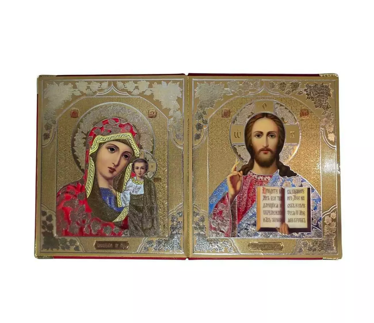 Ікона книжка шкіряна кольорова 2 ліка 15*18
