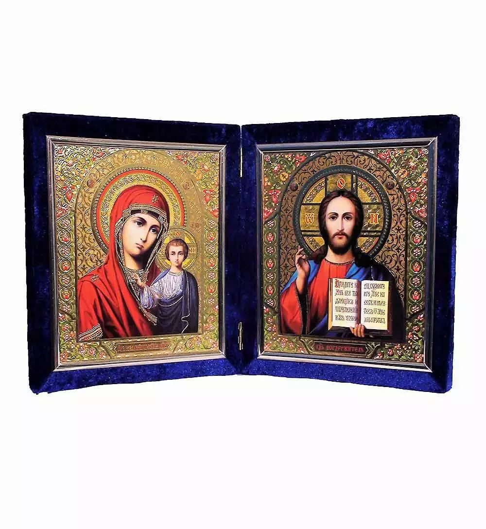 Ікона оксамит глуха два ліка 27*23 см