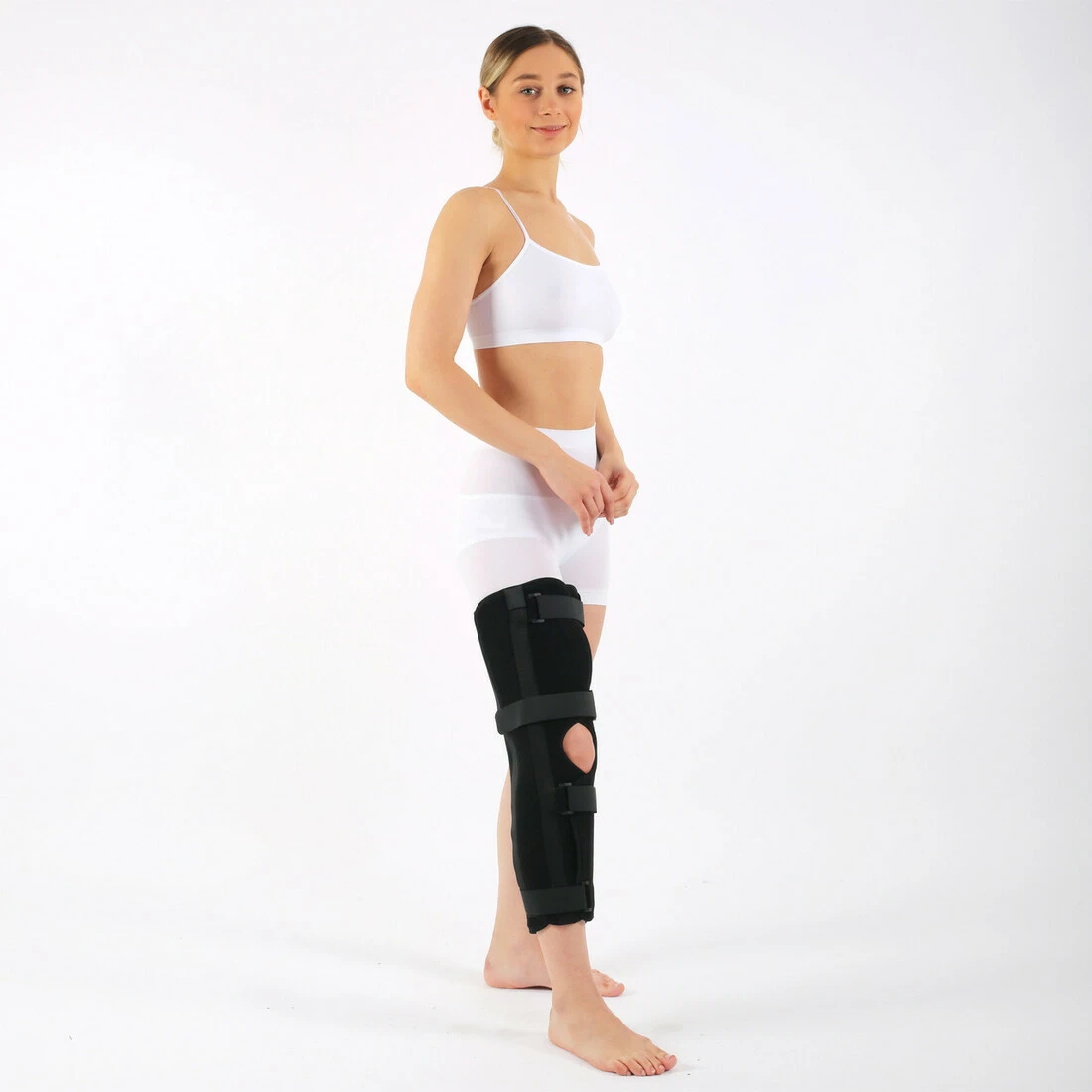 Обеспечивает иммобилизацию при разгибании колена. Имеет съемные