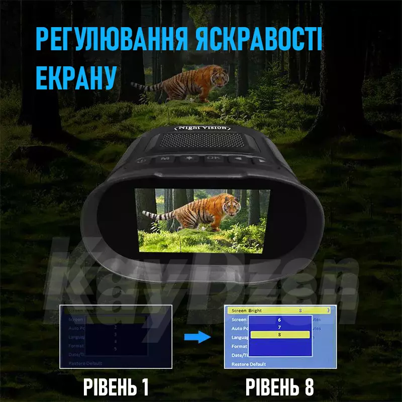 Дисплей бинокля предлагает яркое и четкое изображение, позволяя вам увидеть мельчайшие детали в условиях низкой освещенности.