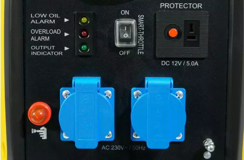 У агрегаті також є датчик рівня олії. Коли олії в двигуні занадто мало, спалахує жовтий індикатор, що означає, що слід вимкнути генератор і перевірити рівень олії.