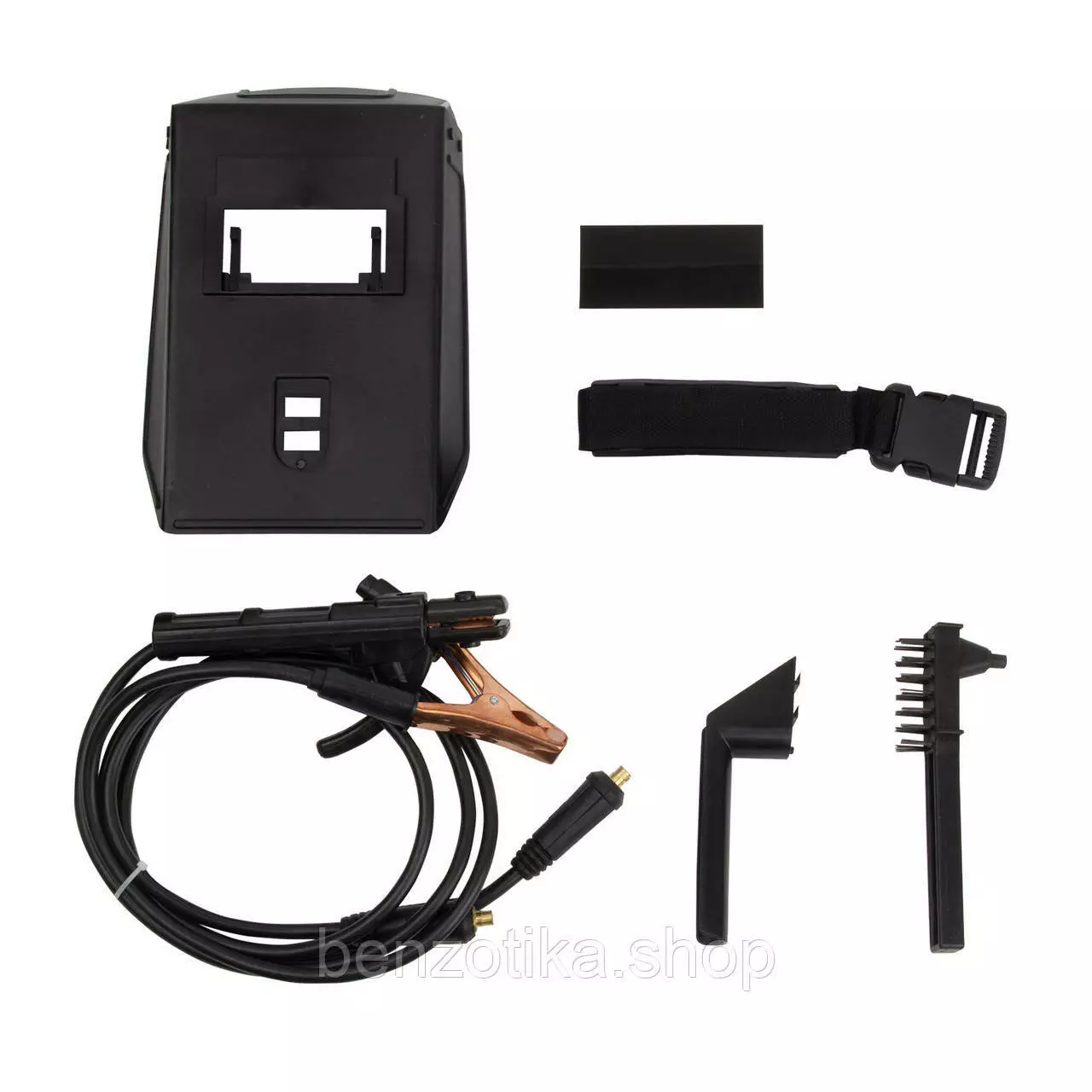 комплекті - кабелі з затискачем маси і тримачем електродів.