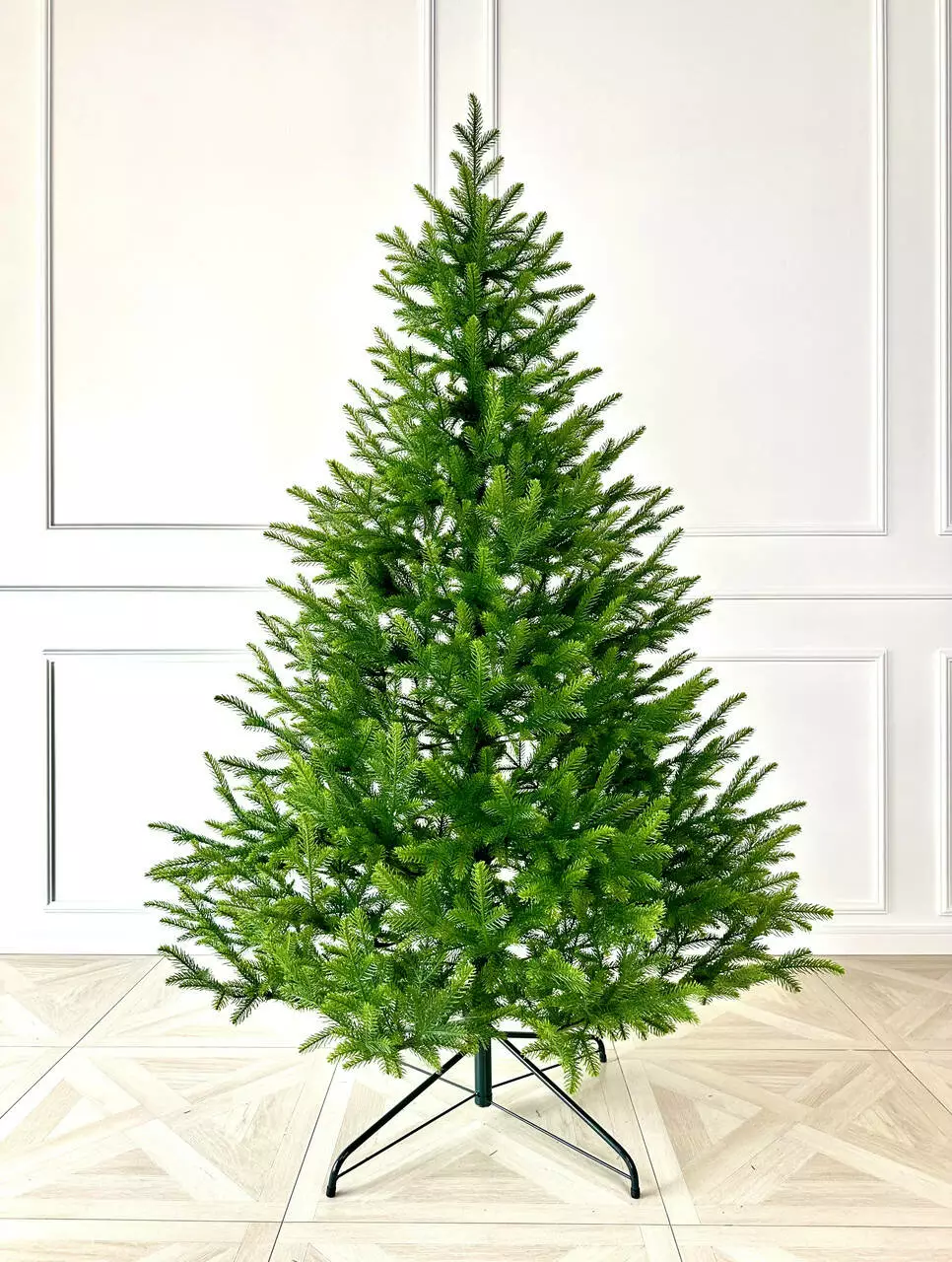 Литая хвоя — главное преимущество этой ёлки. Она мягкая на ощупь, не осыпается, сохраняет форму и цвет долгие годы. Зелёные ветви с салатовыми кончиками выглядят как настоящие, но не требуют ухода. Правильная плотность и реалистичная структура веток позволяют легко разместить гирлянды, игрушки и новогодние украшения любой тяжести.