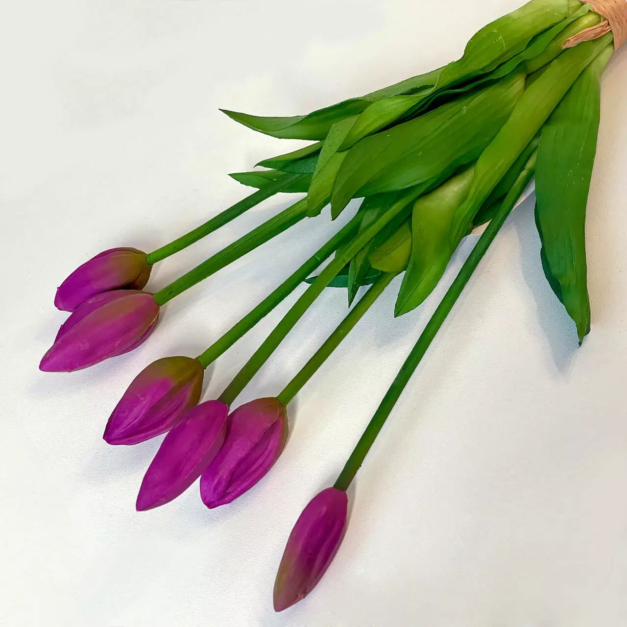Искусственные латексные тюльпаны фиолетовые, букет из 7 закрытых бутонов Real Touch