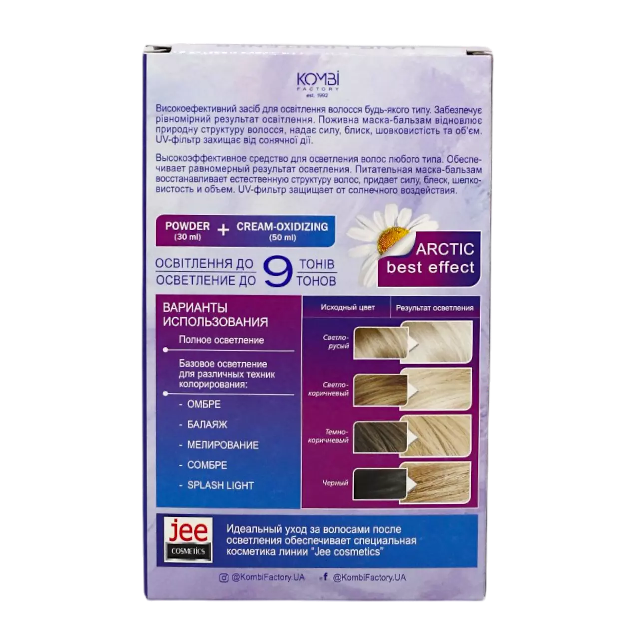 "Засіб для освітлення волосся JEE COSMETICS з екстрактом ромашки