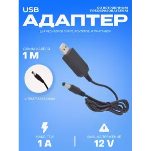 Повышающий переходник – кабель для Wi Fi роутера (модема) USB 5V to 12V DC 5.5*2.1 подойдет для модемов, роутеров, хабов, свитчей, переключателей, разветвителей, ТВ-приставок, ресиверов, зарядных устройств, камер наблюдения и т. д. Питание от любой розетки (порта) USB к любому разъёму на технике, подходящему по размерам, полярности, напряжению и току.