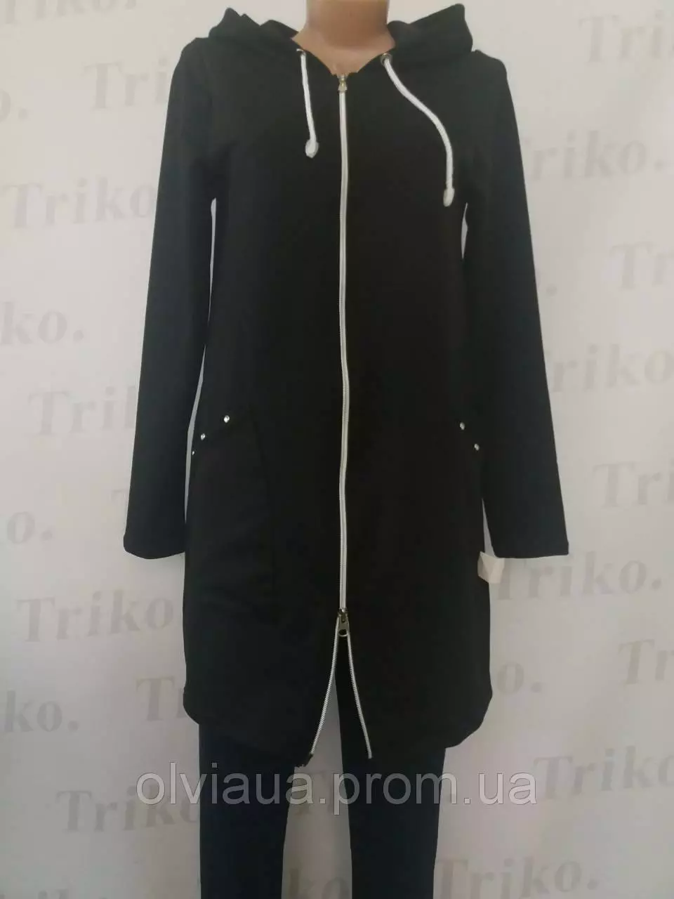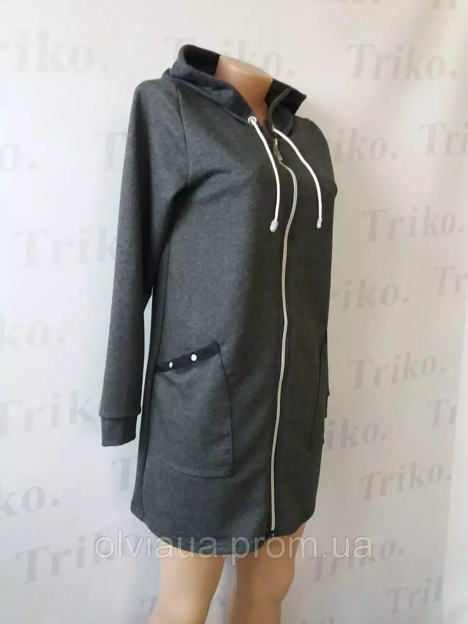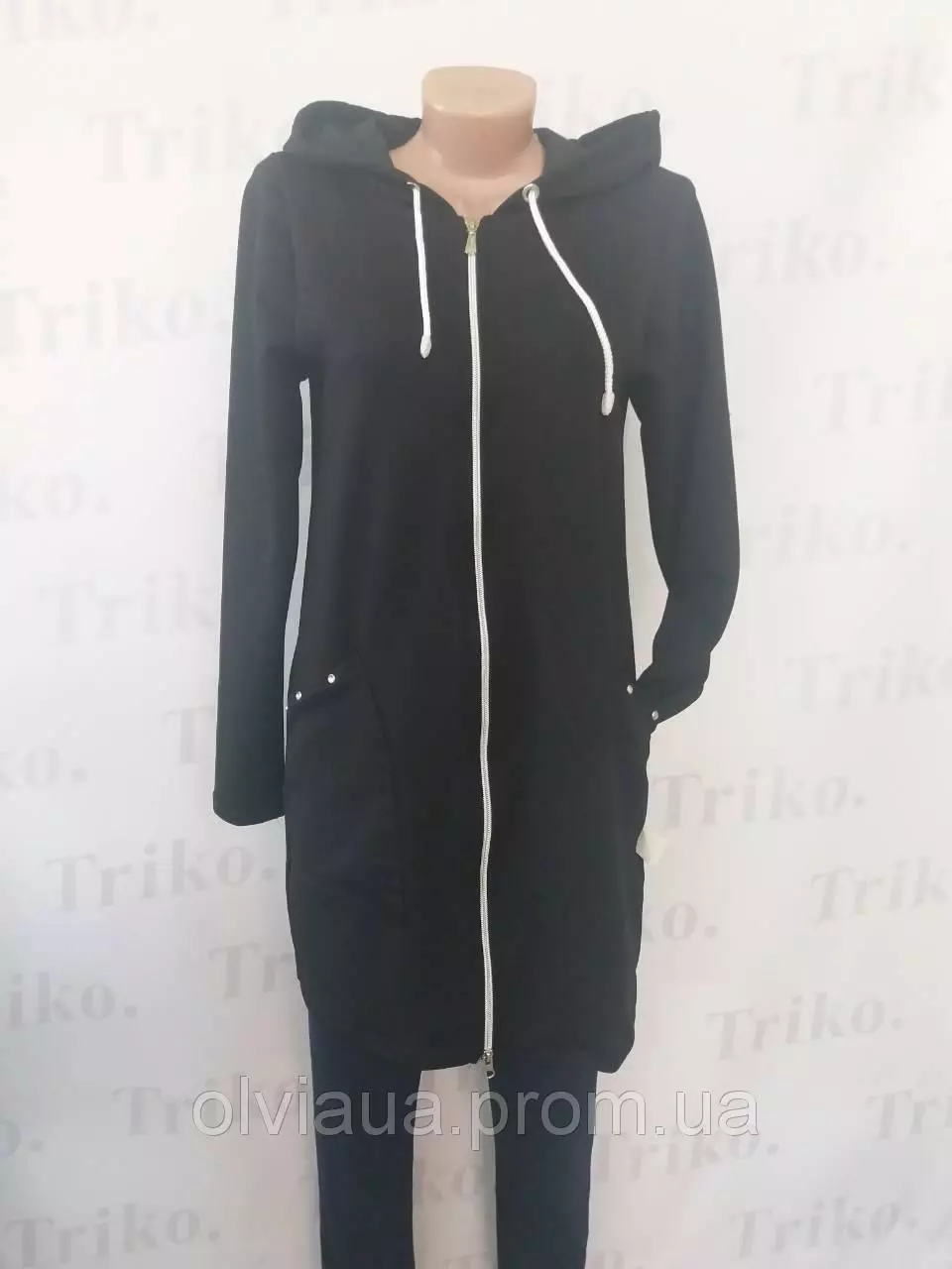 Кардиган на молнии с карманами и капюшоном. Размер : 44,46,48,50,52,54,56. Полотно: двунитка.
