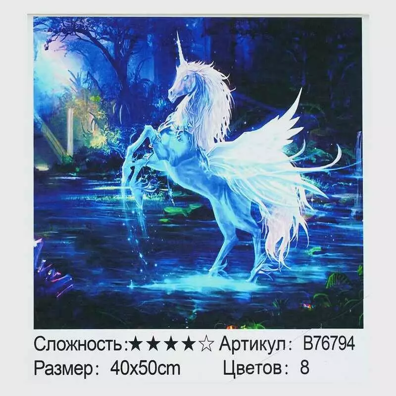 Картина за номерами + Алмазна мозаїка B 76794 (30) "TK Group", 40х50 см, “Казковий єдиноріг”, в коробці