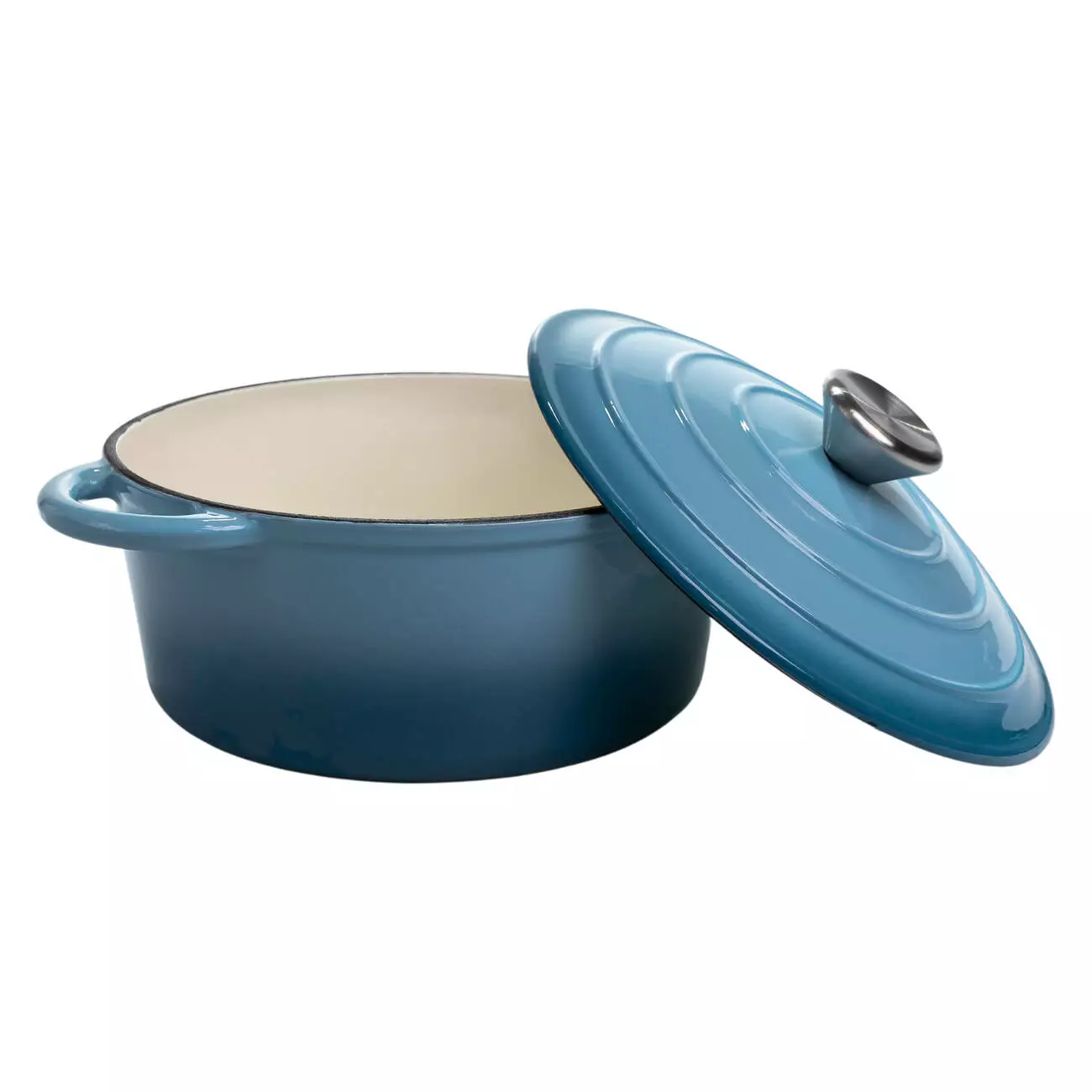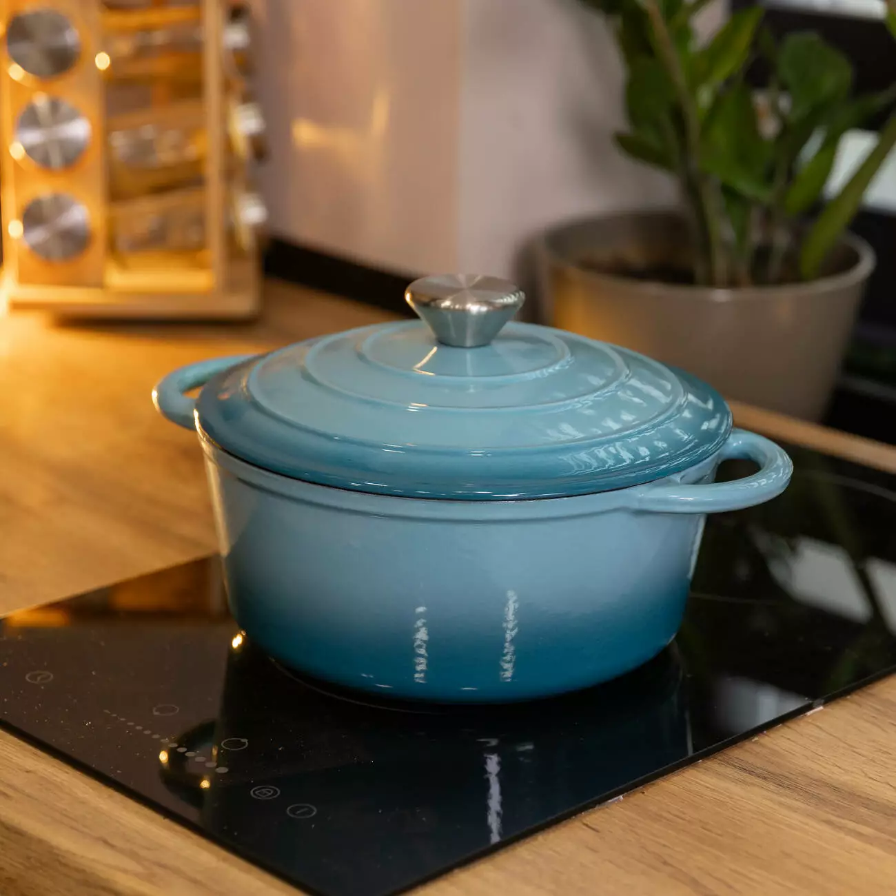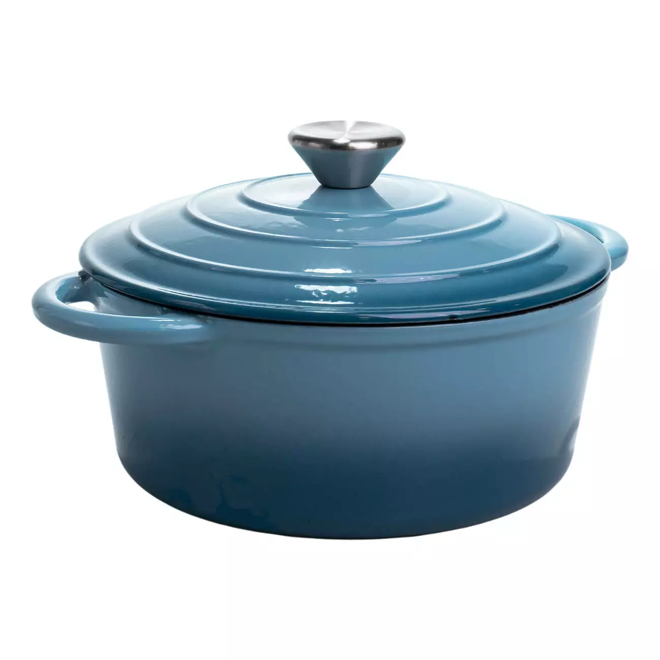 Чавунна каструля об'ємом 2,5 л з міцним емальованим покриттям та кришкою-куполом. Ідеальна для тушкування, запікання та повільного томління – зберігає рівномірне тепло та соковитість страв.