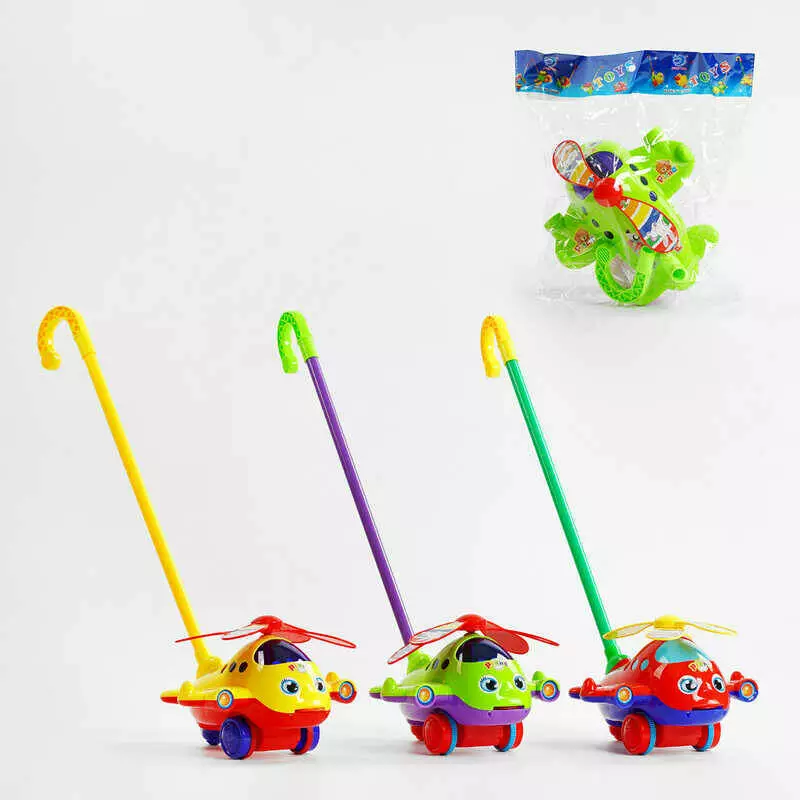 Каталка 0323 (72/2) "Вертоліт", 3 кольори, на паличці, з дзвіночком, у пакеті, ВИДАЄТЬСЯ ТІЛЬКИ МІКС ВИДІВ