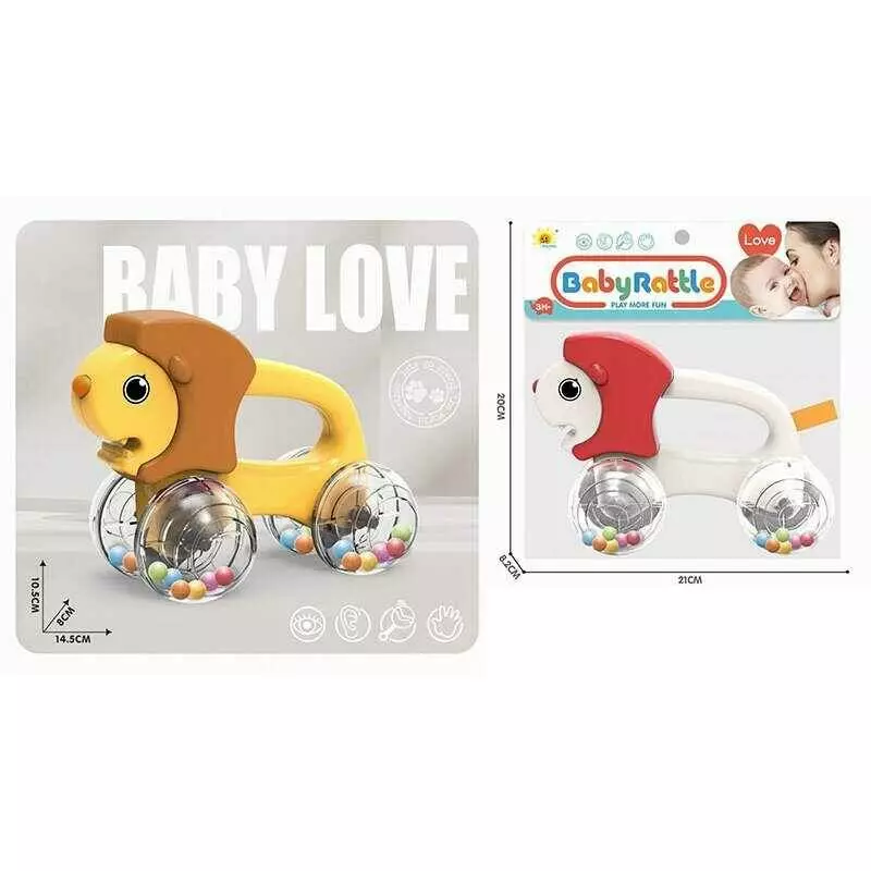 Каталка 2859-5 (192/2) 2 кольори, довжина 14.5 см, брязкальце: прозорі колеса з кульками, ручка для тримання, в пакеті
