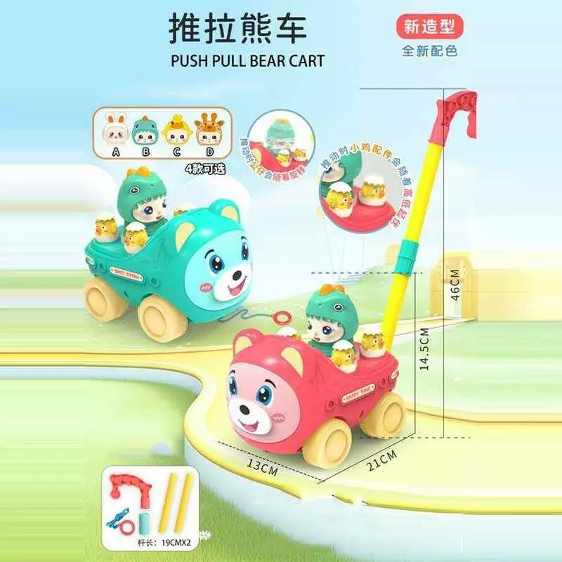 Каталка 8517 B (48/2) 2 види, 13 см х 21 см х 46 см, дзвіночок, обертається фігурка, в пакеті