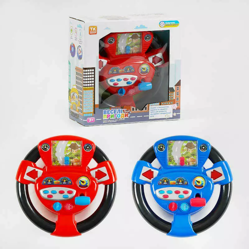 Кермо музичне “Веселі пригоди” ТК-02014 (16) "TK Group", 2 кольори, ОЗВУЧУВАННЯ УКРАЇНСЬКОЮ МОВОЮ, пісні, вірші, світло, в коробці