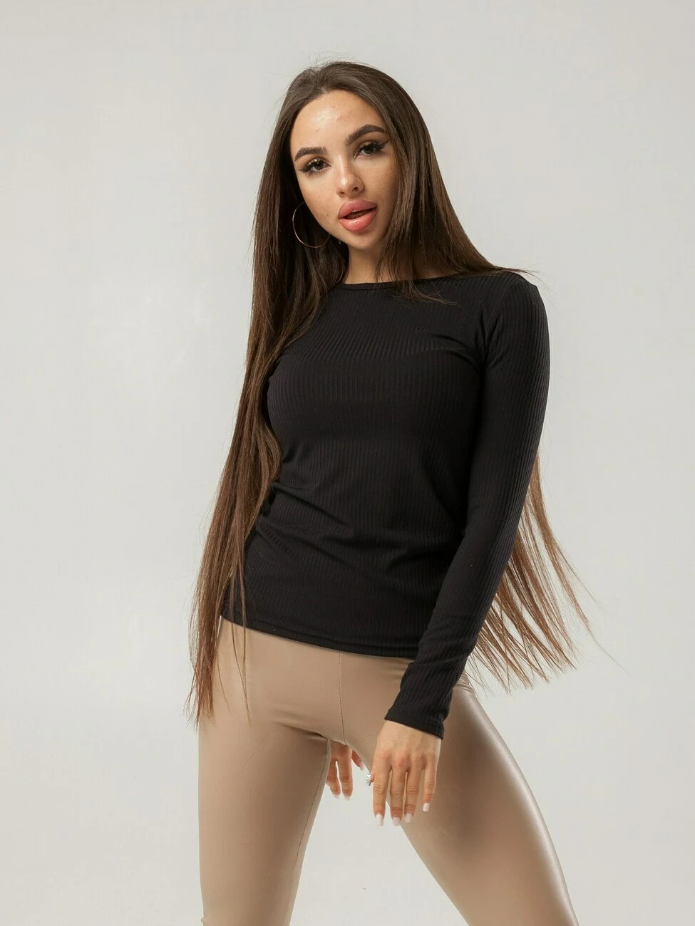 Класичний жіночий джемпер з довгим рукавом - чорний