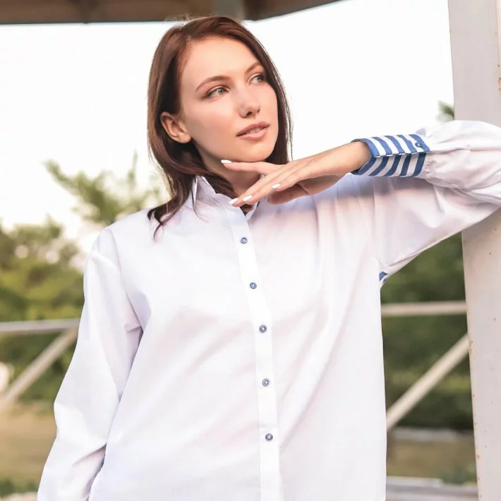 Сорочка класичного крою, вільної посадки, зі спущеною лінією плеча.