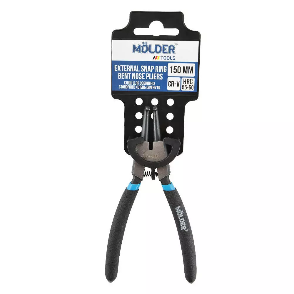 Кліщі для зовнішніх стопорних кілець, вигнуті MOLDER 150мм, Cr-V, HRC 55-60, поліровані (72шт/ящ)