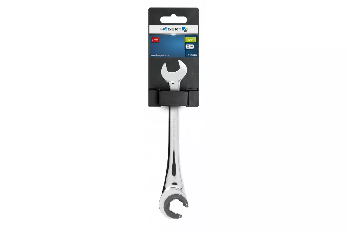 <p>Ключ разрезной комбинированный с трещоткой 8 мм Hogert