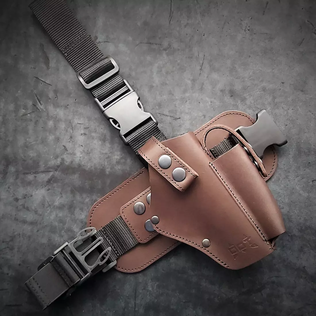 Кобура на стегно під GLOCK 17, шкіряна, коричнева. Виконана з натуральної щільної шкіри.