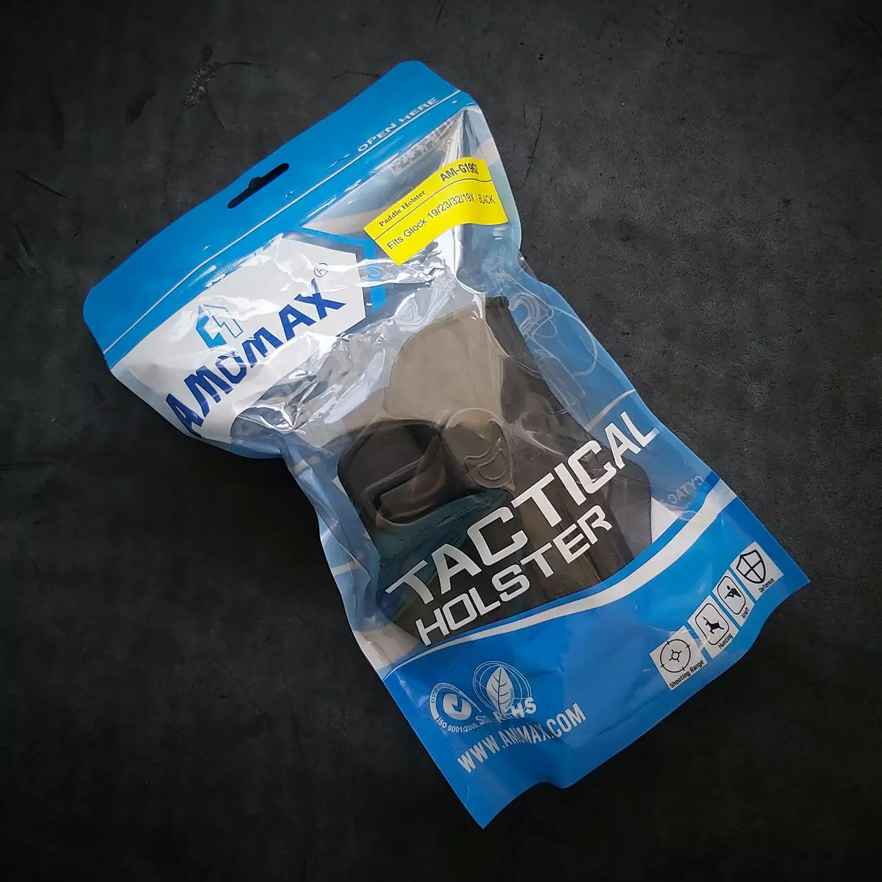 Кобура поясна із щільного пластику. Виробництво AMOMAX. Підходить під Glock 1719/23/32/19Х