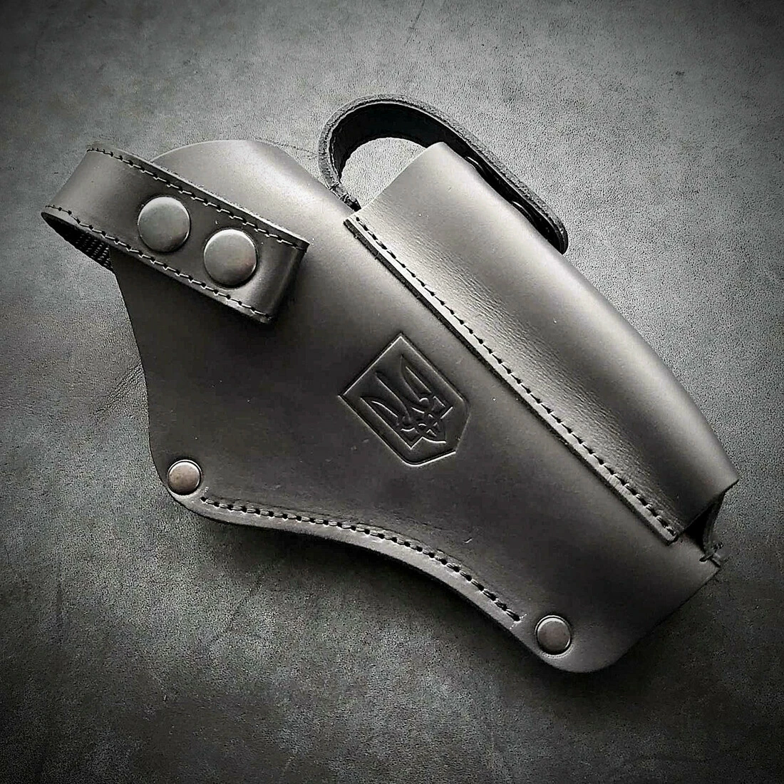 Кобура поясна під АПС | шкіряна| чорна| з гербом