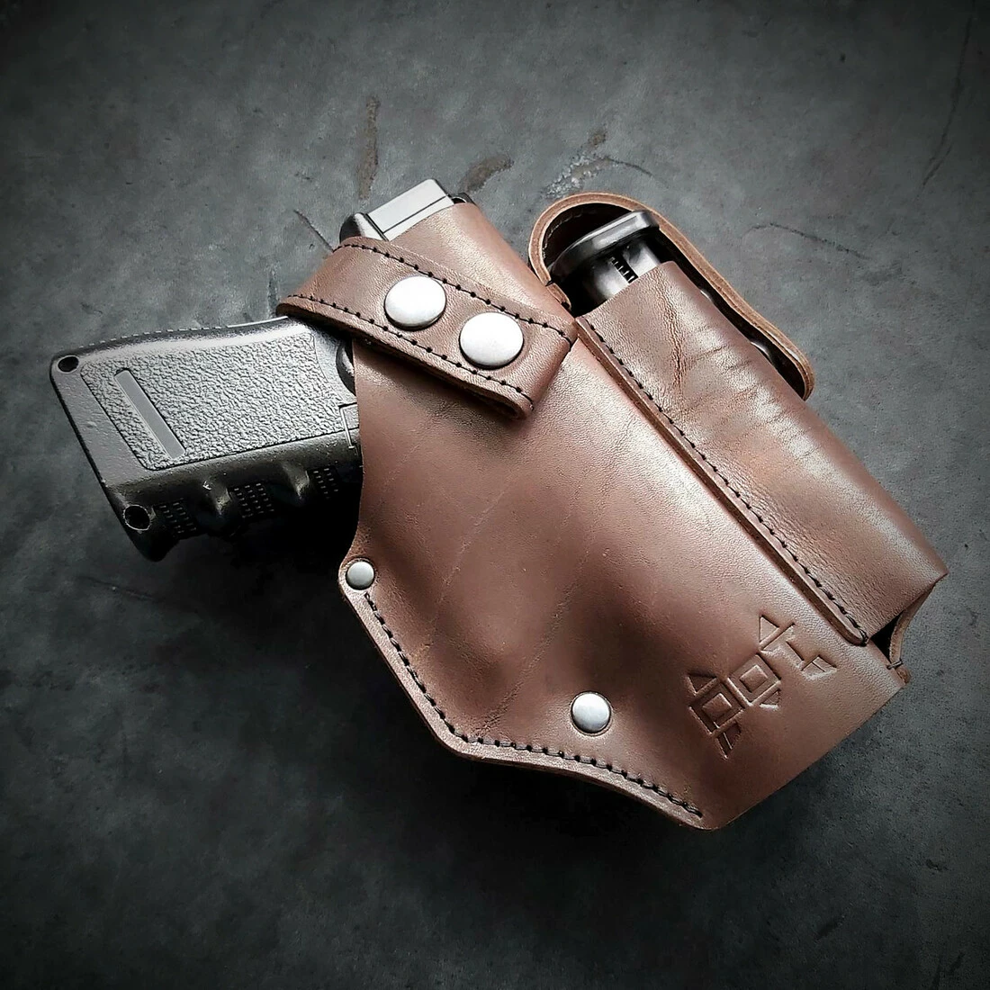 Кобура поясна, шкіряна під Glock 19. Колір коричневий.