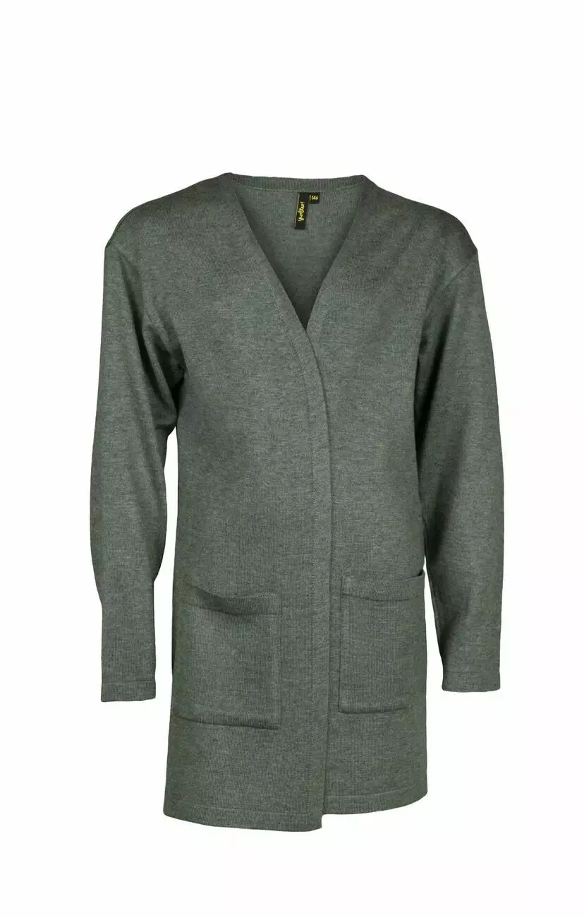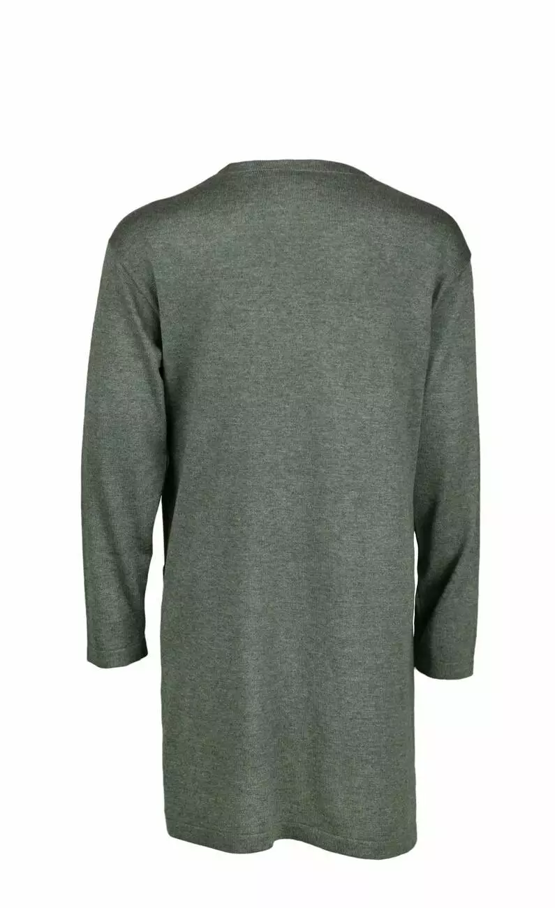 Деталі: Кофта сірого кольору. Накладні кишені. Занижена лінія плечей. Вільний прямий крій.