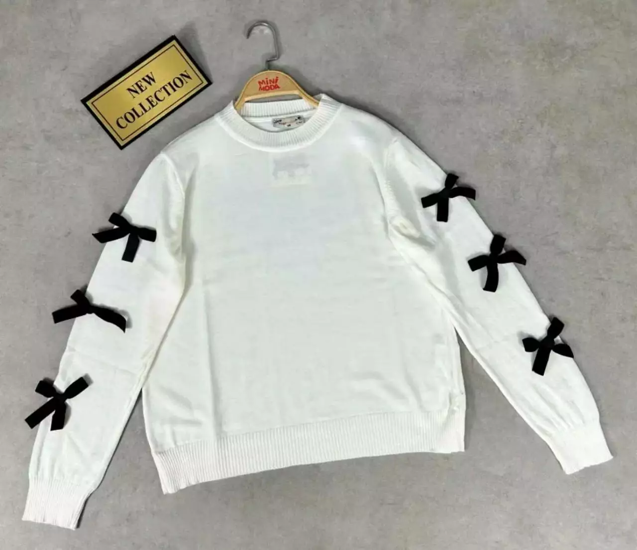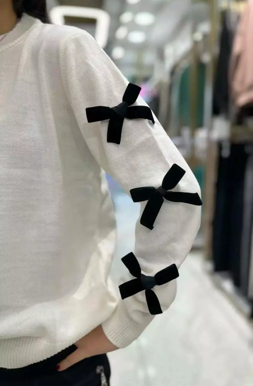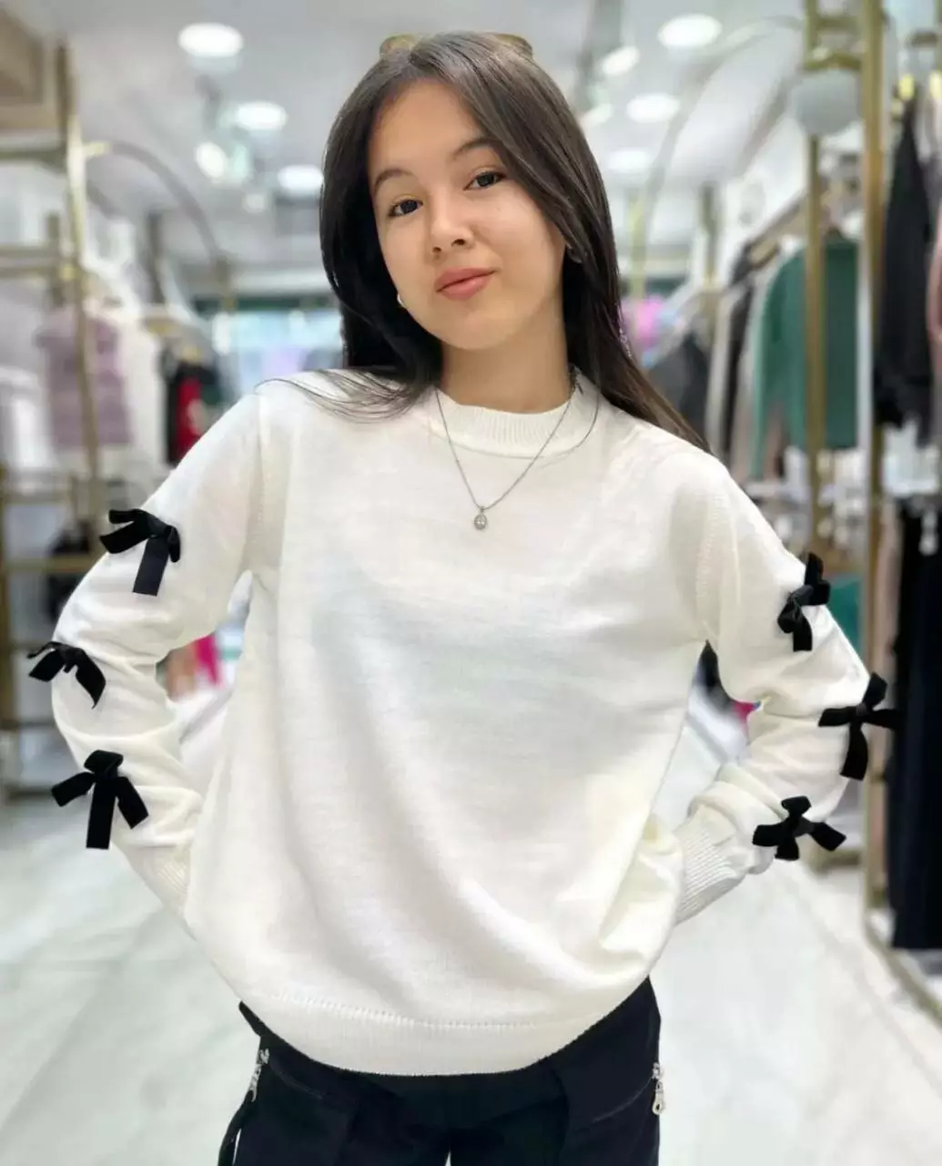 Кофта з прикрасою БАНТИКИ дів. молочний вязка 1579 MINI MODA